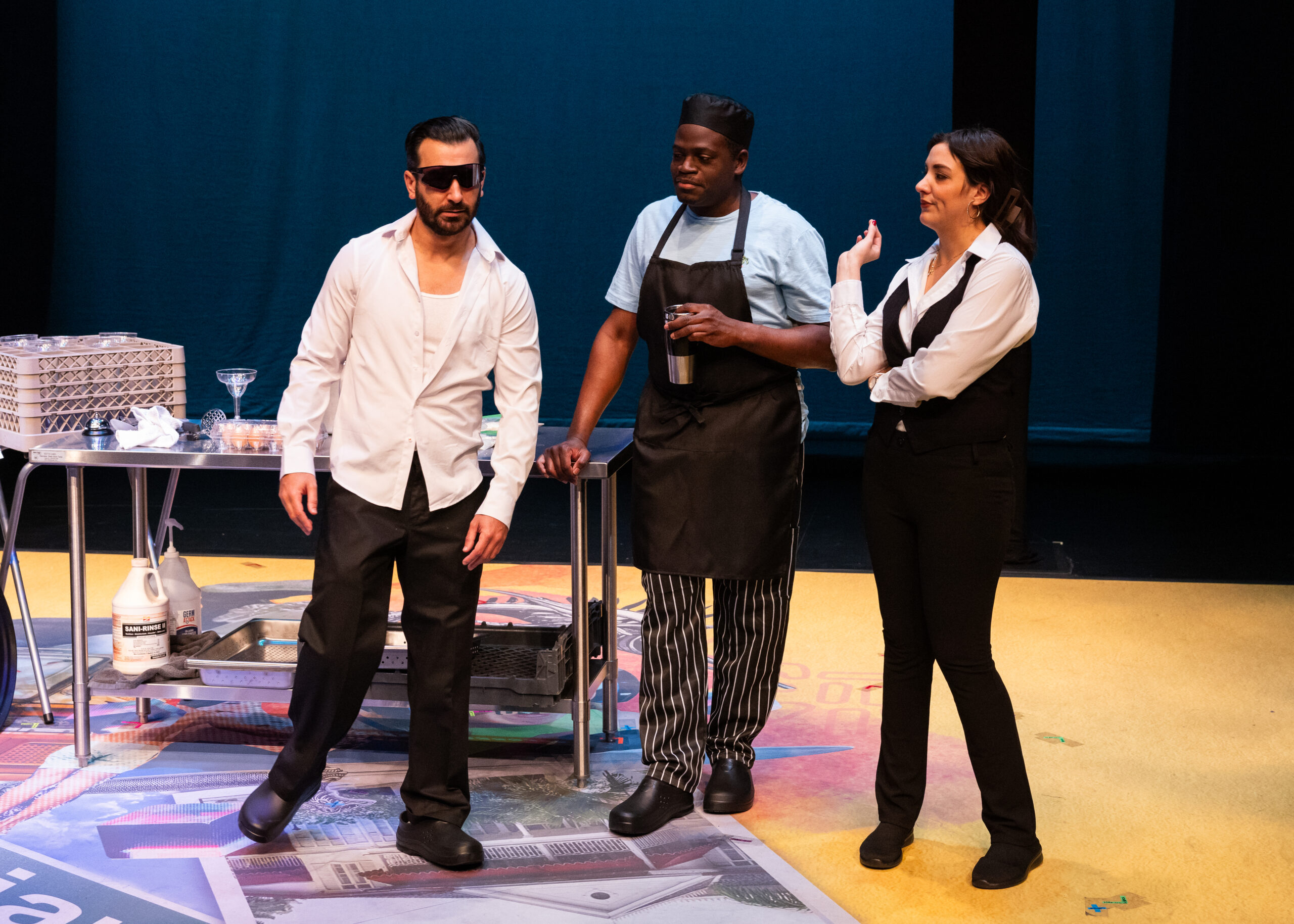 Chris Anthony Ferrer, left, Devon Dassaw, center, and Diana Garle in Swordfish Grilled (So I Don’t Get Sued) Photo by Morgan Sophia Photography