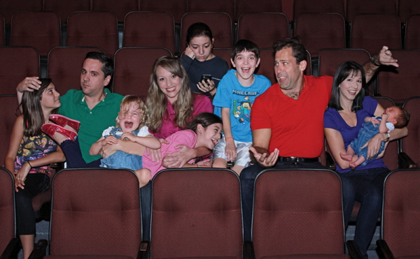 Henry Gainza, Amy Miller Brennan, Jim Ballard and Julie Kleiner cope with some extras who do not appear on stage in Rated P For Parenthood / Photo by Alberto Romeu