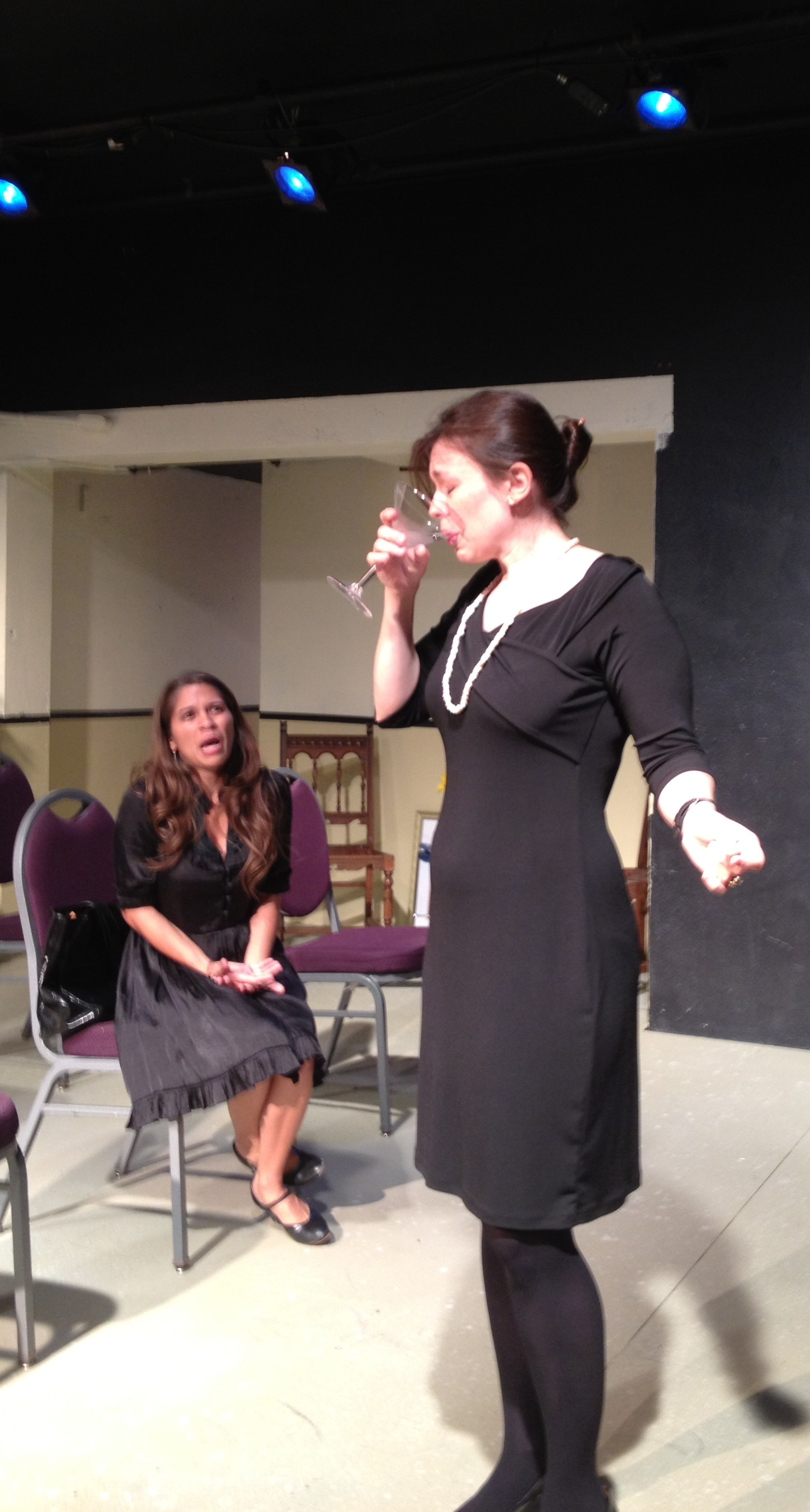 Natasha Waisfeld and Anne Chamberlain compare notes about a dead theater critic in Tony Finstrom’s Venom & Vodka