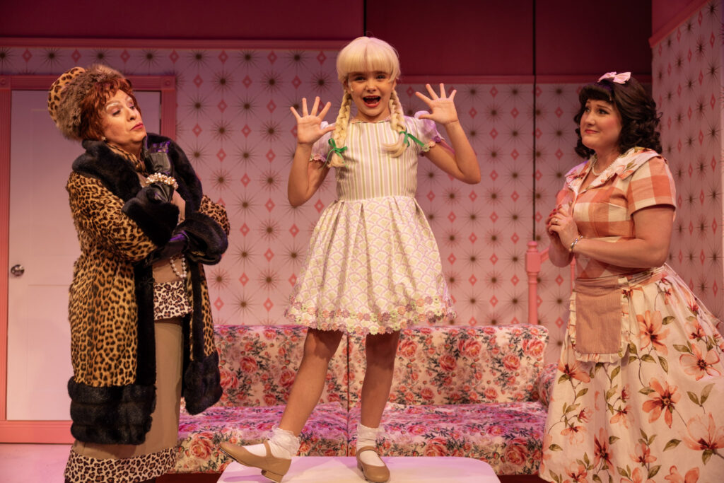 And then there’s Aaron Bower as Tina’s grandmother, Lita Encore, the brazen theater critic who just about dances away with every scene she’s in. From the moment Bower bursts onstage, she’s Hurricane Aaron, a tempest of superbly delivered lines, eye-rolling elegance, and pure theatrical bravado. We get the feeling that Bower has waited her whole career for a role this juicy, and she’s going to savor every morsel. And yes, the audience did let out a collective OUCH! when Bower dropped into those splits! Brava to this first lady of the theater.
