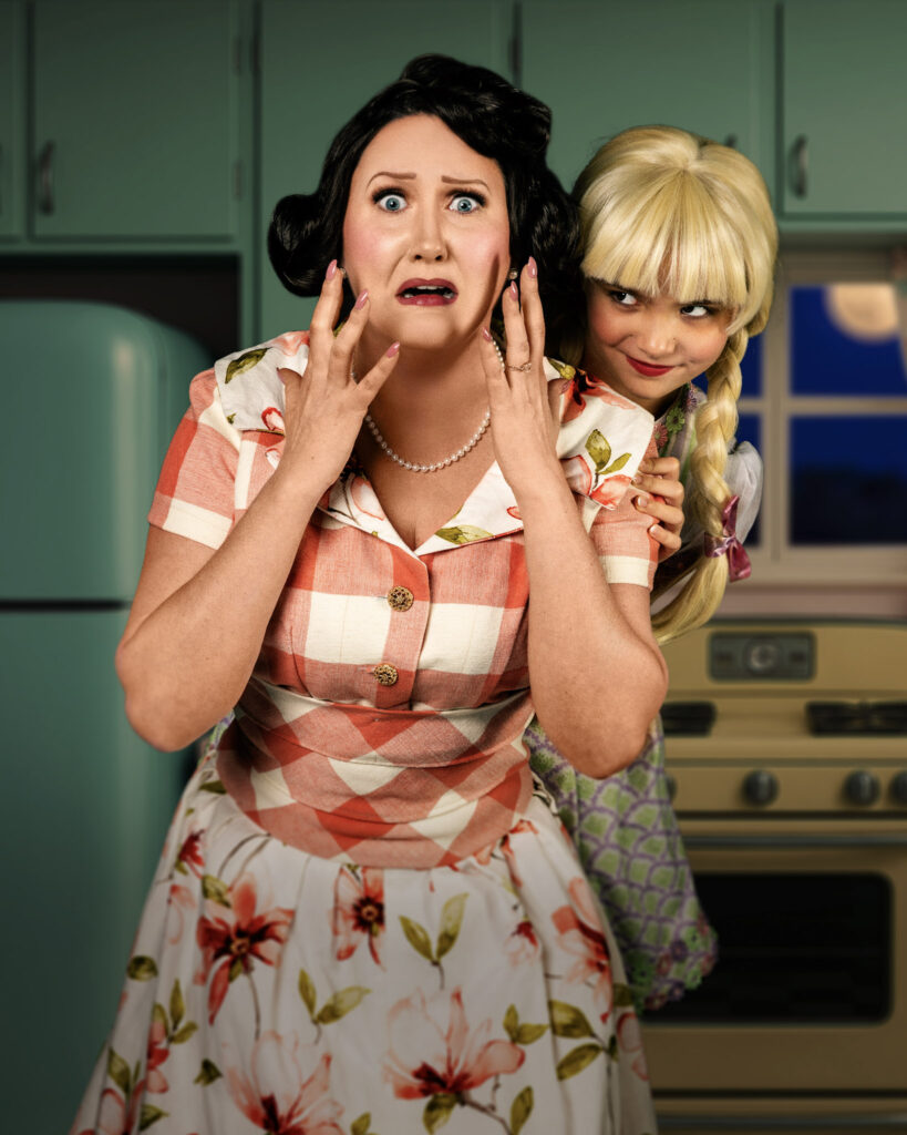 As Tina’s Mommie Dearest, and the emotional center of Ruthless!, Lindsey Corey is the picture-perfect pearl-wearing mother Judy, until she isn’t. Think a 1950s Stepford Wife on Xanax, and that’s Corey.