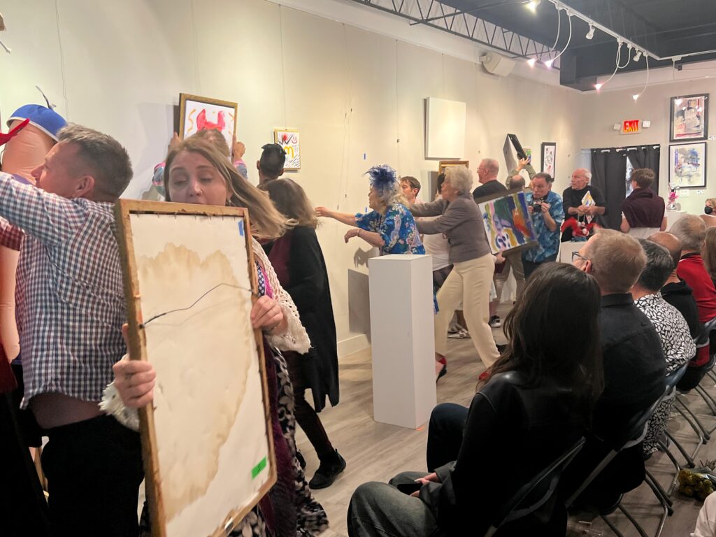The evening is produced at Arts United, an actual storefront gallery with actual art, across the street from Plays of Wilton’s home at The Foundry.