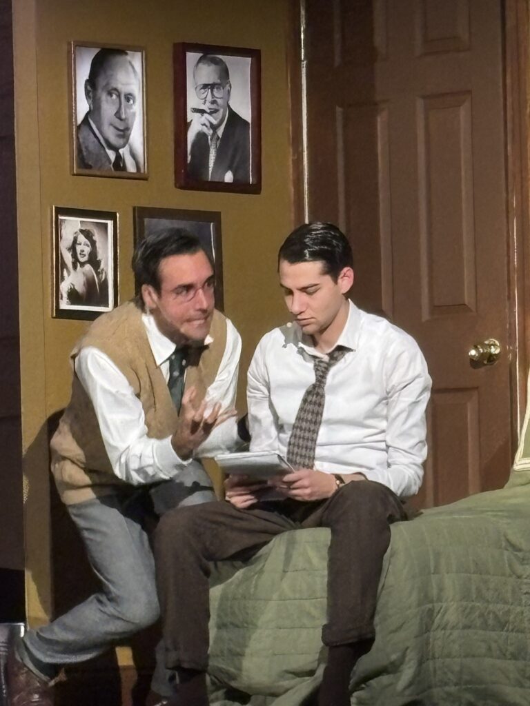 Mark Hernandez, as Stanley, is mesmerizing. It’s hard to take your eyes off him, and not just because he’s not bad to look at, but because he commands every scene he’s in. Stanley represents a different response to the same convoluted environment they reside in. Where Eugene intellectualizes, Stanley counts the money they don’t have yet. He’s ruthlessly pragmatic with a one-track mind, constantly calculating how the duo can make it big in show business.