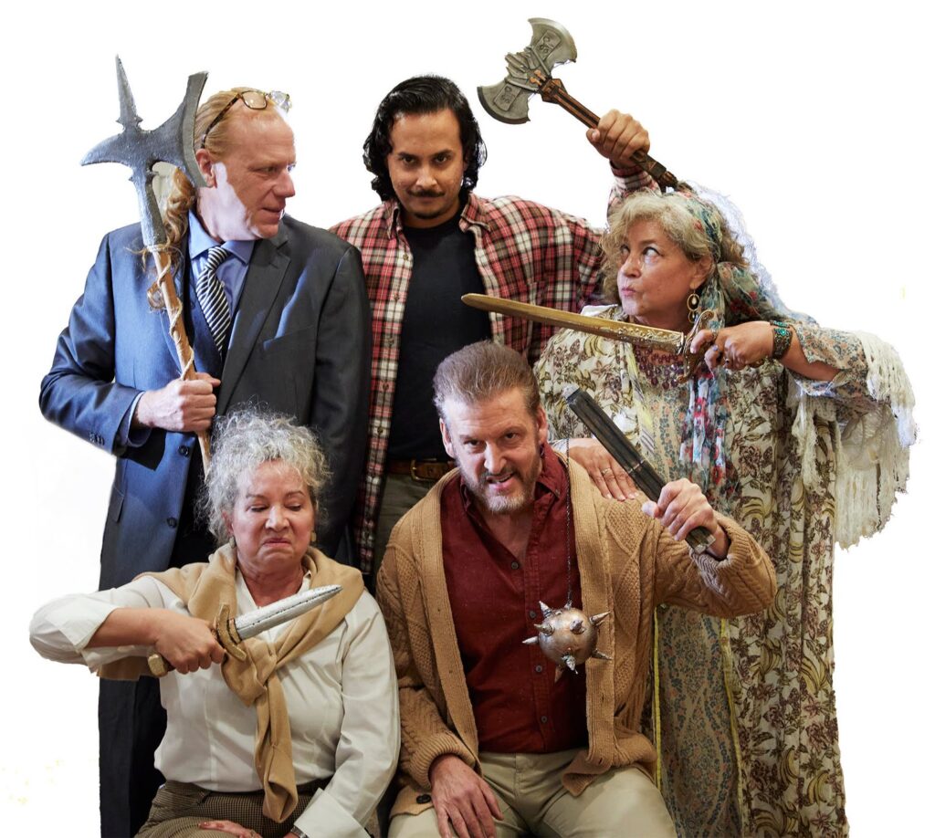 As the scriptwriting student Clifford Anderson, Om Jae pulls double-duty as the play’s fight director, no easy feat given it seems like half the play consists of one-upmanship in the physical arena. The other half of the play is made up of one-upmanship in the mental arena, and that’s where Betsy Bittar, as Helga Ten Dorp, comes in. With her over-the-top German accent and flowing attire, Bittar seems every bit the outlandish psychic she is rumored to be. Definitely a crowd favorite, Bittar made her exit in Act One to a round of applause.