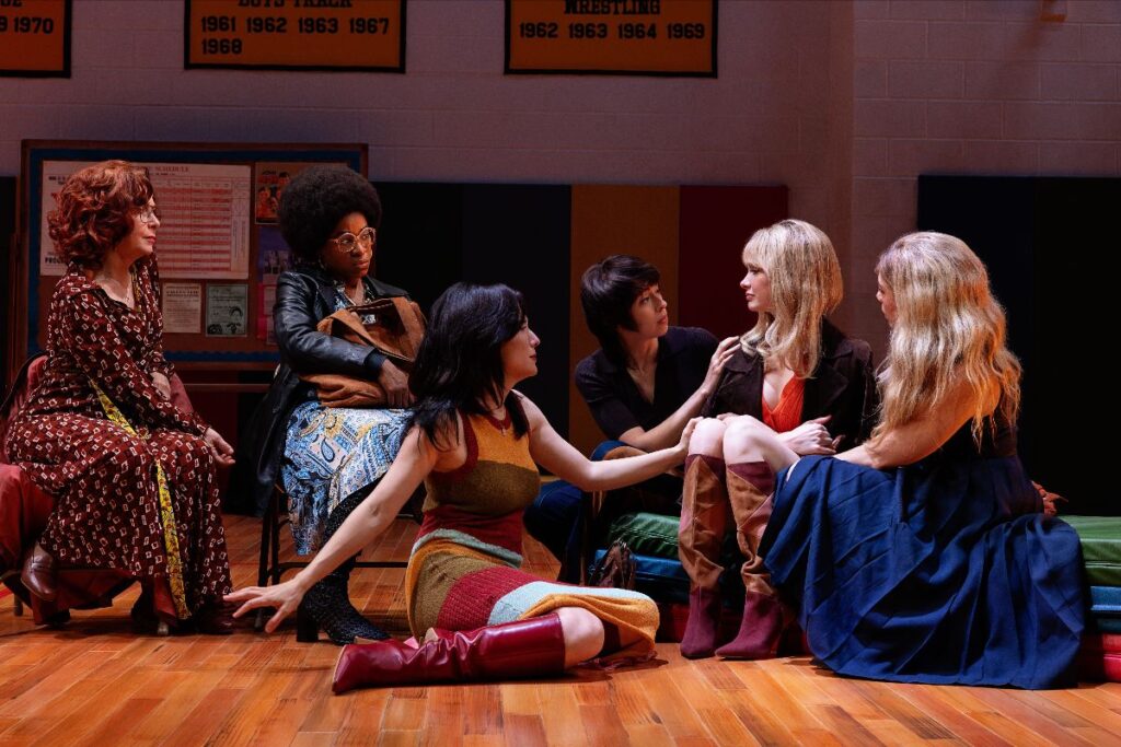 The play opens as current day Lizzie (Susannah Flood) warmly welcomes the audience with engaging charm. She is going to take us back to 1970 when her late mother, also named Lizzie, organized a weekly conscious-raising session in an Ohio town in a basement rec center’s basketball court at the start of the second wave feminism.