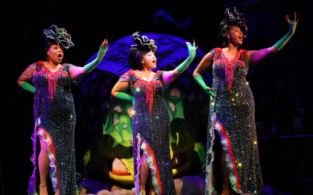 Nicholas Ward is the voice of Audrey II. His rich voice gives the plant presence, his voice deepening as the plant grows. The familiar refrain, “Feed me!” rumbles out with increasing urgency as the musical progresses. Ward has Broadway, film, television, and tour experience, and movie soundtrack credits (Wicked 1 and Wicked 2 “For Good”).