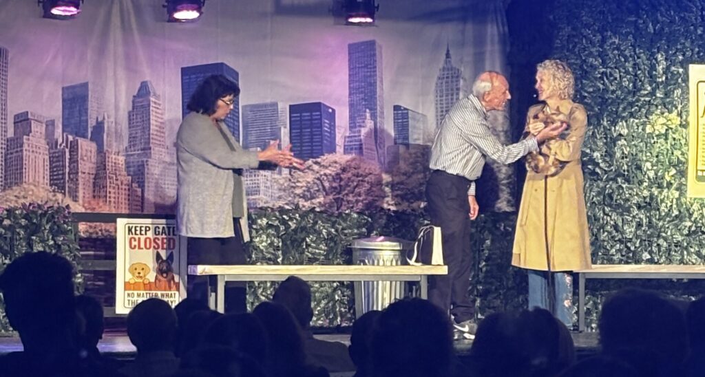 Either intentionally or unintentionally, there’s always a scene stealer in every show, and in this one, it’s Louis Vuitton Budney, Director Holly Budney’s Yorkshire Terrier who stars as Carol’s dog Peaches. Louis is only on stage briefly, but he makes the most of it, even trying to wriggle his way out of Carol’s arms so he can walk around and show everyone how gorgeous he is.
