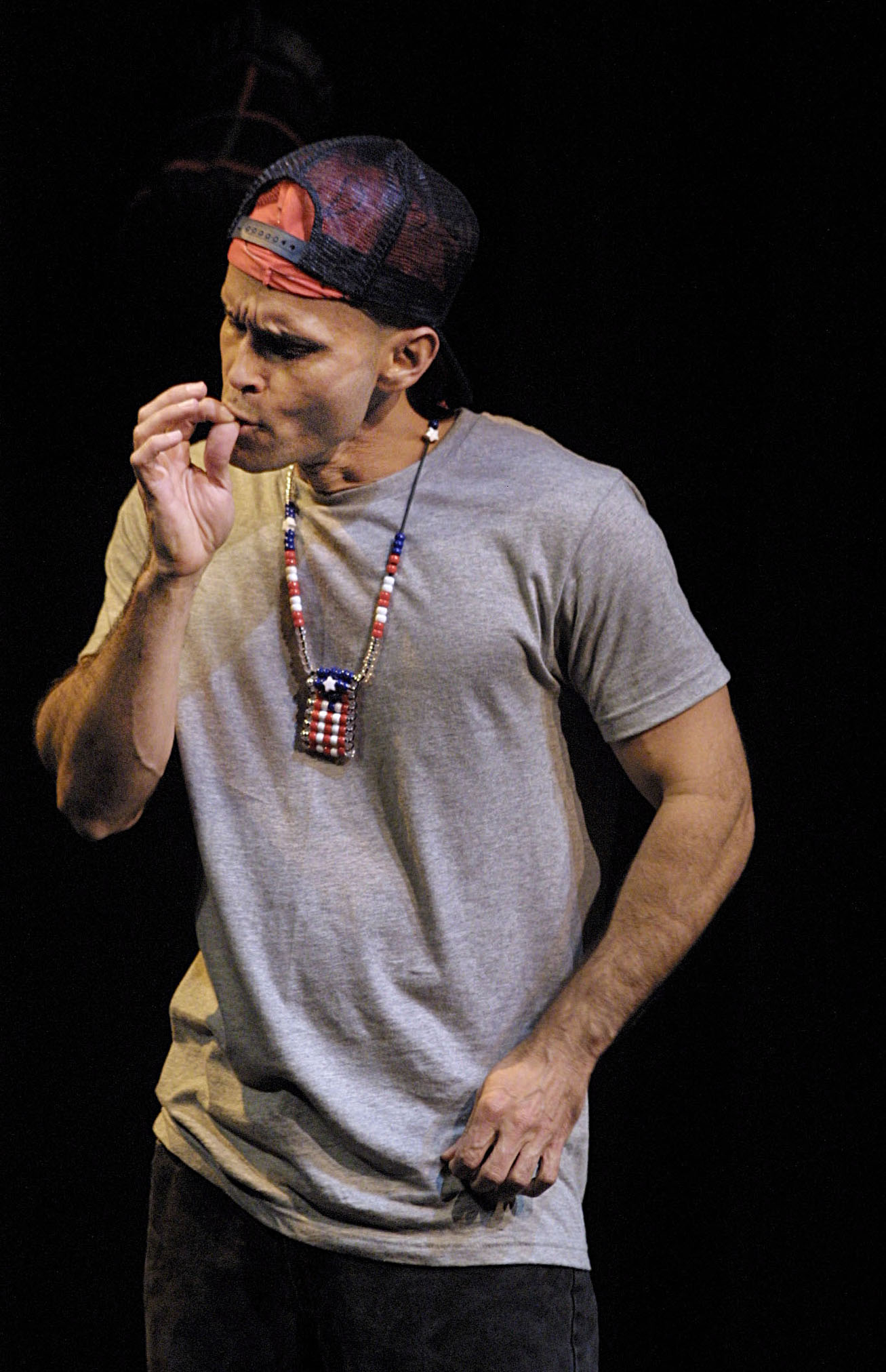 1/19/01, Photo by PEDRO PORTAL/……… Actor Teo Castellanos as ” Wyndwood ” one of the many characters he plays in ” NE 2ND AVE ” a play writen by him and directed by Michael Garces.