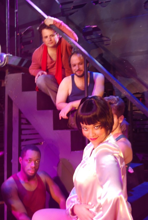 The stand out is Eastlick with her caramel skin, sensual voice, Louise Brooks helmet hair, lips framing a high-wattage smile. She exudes sexual heat while leading an able corps of chorus boys through their paces.
