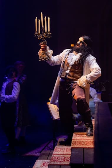 Frank Montoto as Lumiere, who also doubles as Gaston in Area Stage Company’s “Beauty and the Beast.” (Photo courtesy of Giancarlo Rodaz)