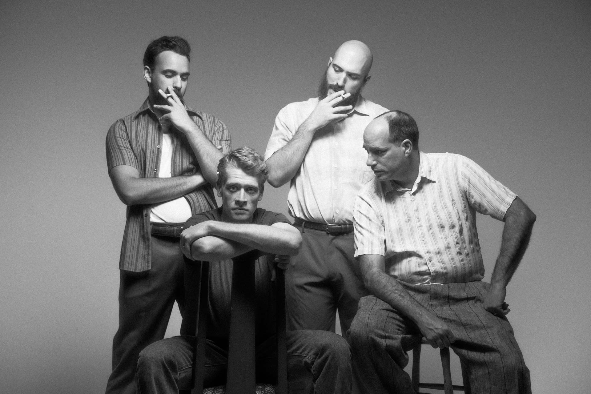 Timothy Mark Davis, center, seated, as Stanley Kowalski with Jesus Reyna, Alex Joyel, Juan Gamero, Russell Kerr in New City Players’ production of A Streetcar Named Desire. Photo by Ryan Arnst