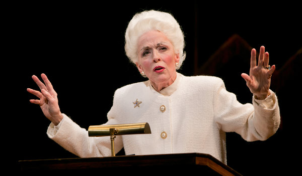 The play opens with Richards delivering a folksy, chatty commencement address to a high school somewhere and then drifts into that limbo that most one-actor biographies occur in. Then the play strangely shifts structure as we eavesdrops on a day-in-her-life as a governor, herding cats and agonizing over whether to issue a stay on a death penalty case.