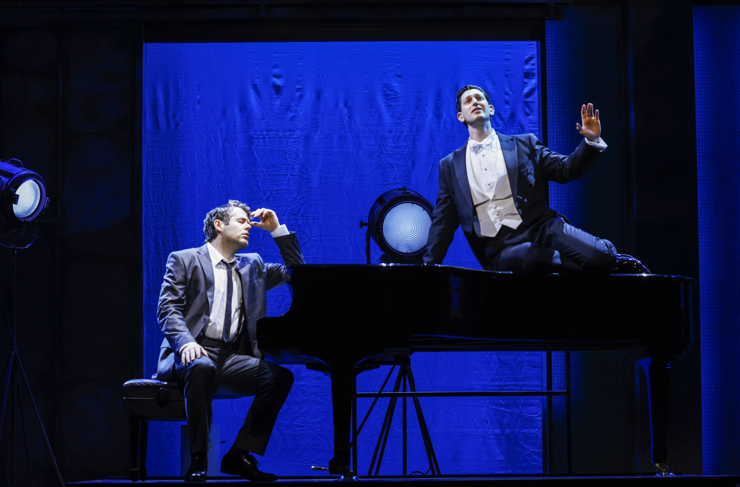 Max Roll as Oscar Levant listen to Harris Milgrim as George Gershwin’s spirit.