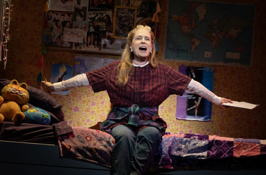 The action moves fluidly, thanks in part to sets that slide onto the stage and drop down from above, ensuring smooth transitions. Scenic designer David Zinn creates settings that feel realistic, detailed, and versatile. For instance, school lockers appear in some scenes and rotate to reveal library bookshelves. In Kimberly’s room, bright colors such as yellow reflect her enthusiasm, while set pieces such as a stuffed animal reinforce her youth.
